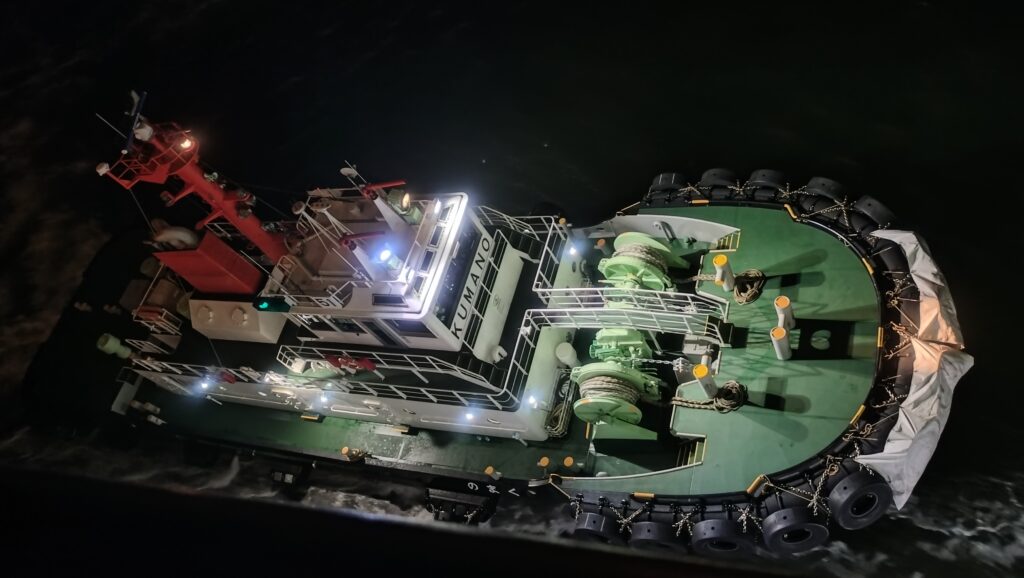 出航の際は向きを変えるのにタグボートがサポートをしてくれるみたいですね。