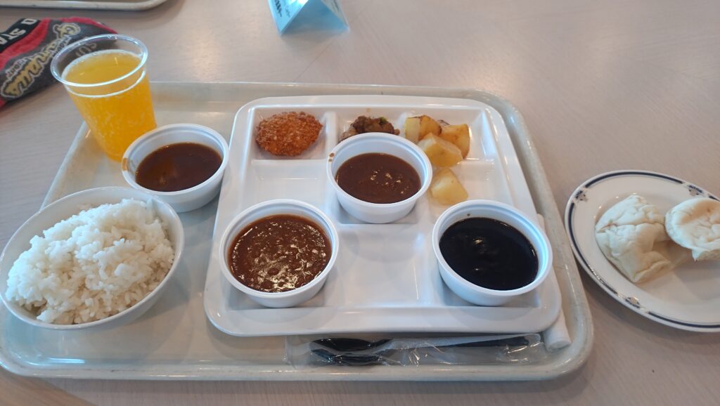 昼のメニューは4種類のカレーということで、食べ比べしました。