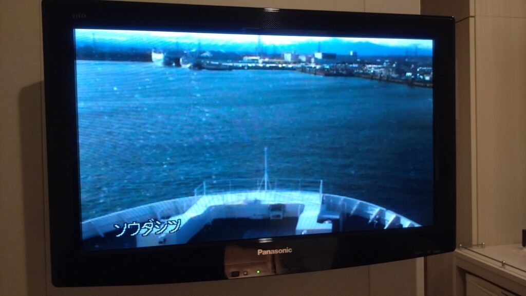 気づけば仙台フェリー港へ近づいていて、客室のテレビでも船の前面の様子が見れるのも面白かった。