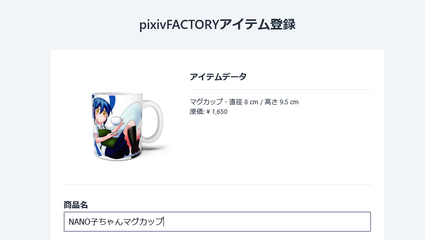 プレビューがいい感じだったので、pixivFACTORYにアイテムを登録していきます。