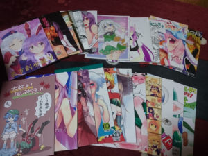 途中で友人に店番を頼みつつ、近場の妖夢、幽々子、鈴仙スペースを急いで回ってきました。急いで回ったので買い逃しもたくさんありました・・・。