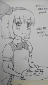 スケブも2冊頼まれまして、カフェ妖夢ちゃんと鈴仙を描きました。もっともっとアナログ絵もうまくなるぞー!